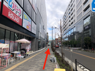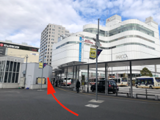 ②バスロータリーに沿って歩き「ビックカメラ」のビルと「PARCO」のビルの間の道を目指します。