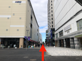 ③「ビックカメラ」と「PARCO」のビルの間の道を真っ直ぐ進みます。