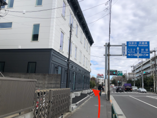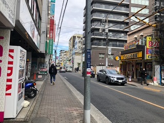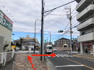 ⑧左「業務スーパー」が見えたら、道路を右に横断します。